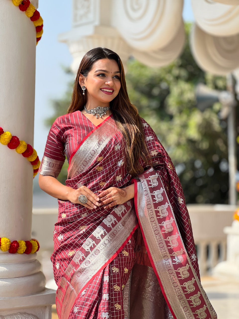 Arresting Wine Soft Silk Saree With Lovely Blouse Piece