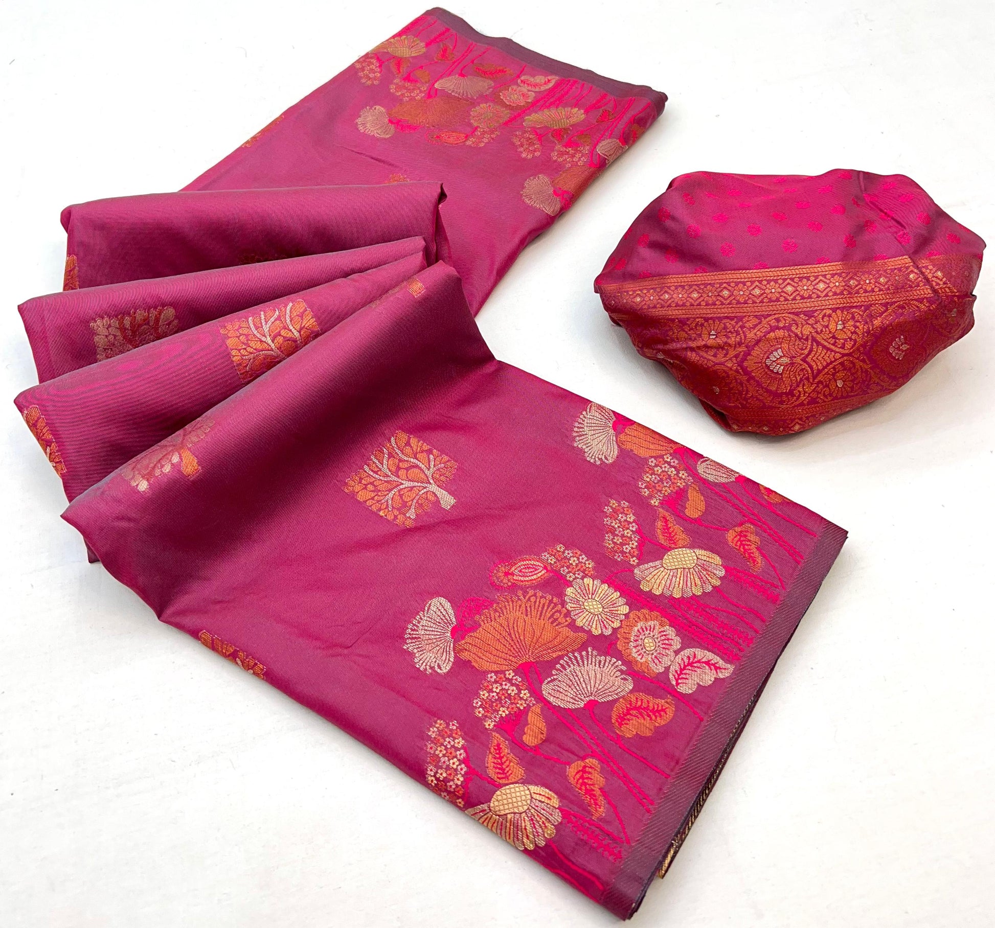 Assemblage Pink Soft Banarasi Silk Saree With Gleaming Blouse Piece
