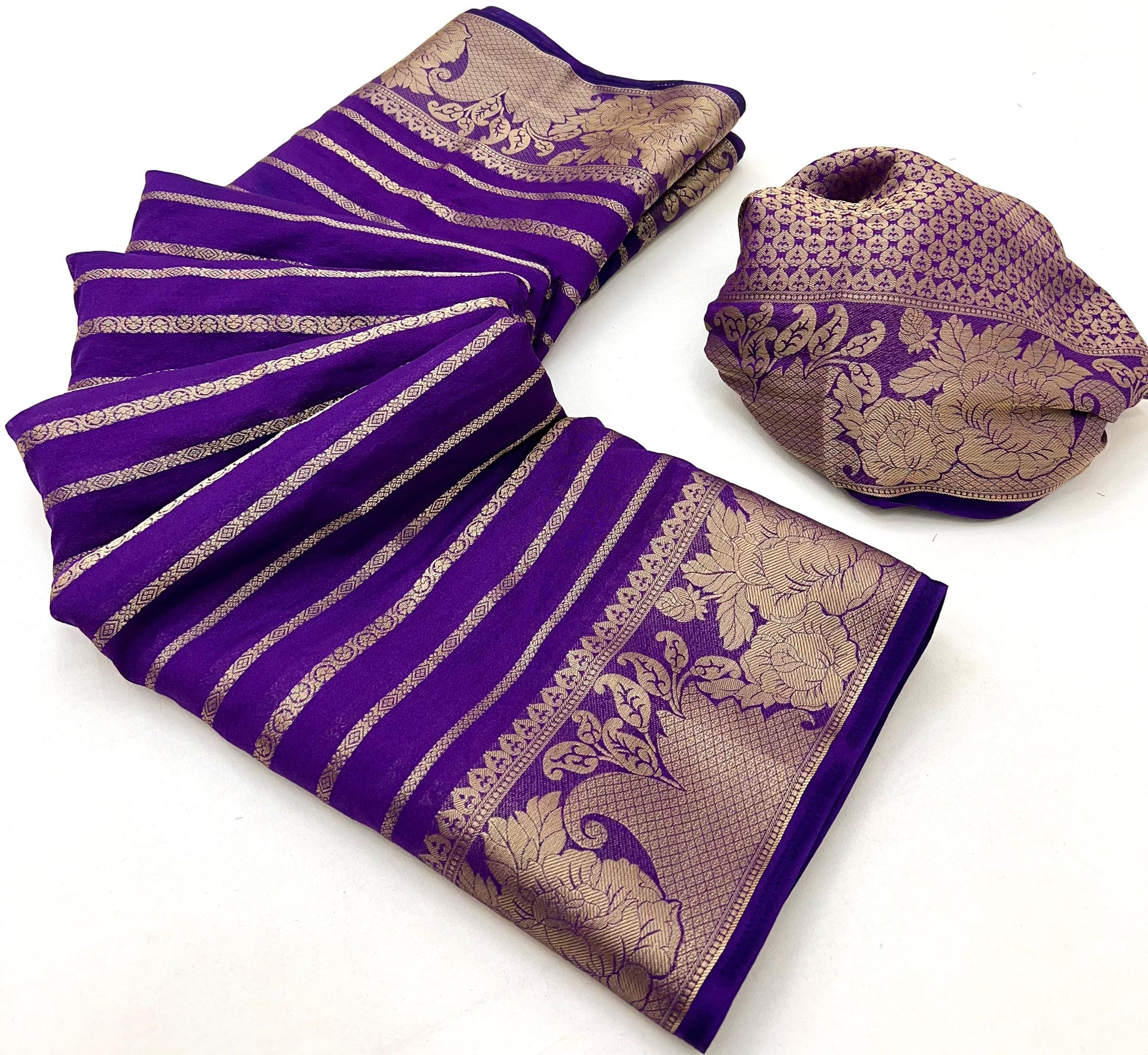 Pure Soft Georgette Fabric Weaving Saree With Finest 3 Copper Zari Wooven Pallu With Fancy Tassels n Zari Wooven Border With DESIGNER Body Weaving in Saree Having Running Barcode Butti Blouse