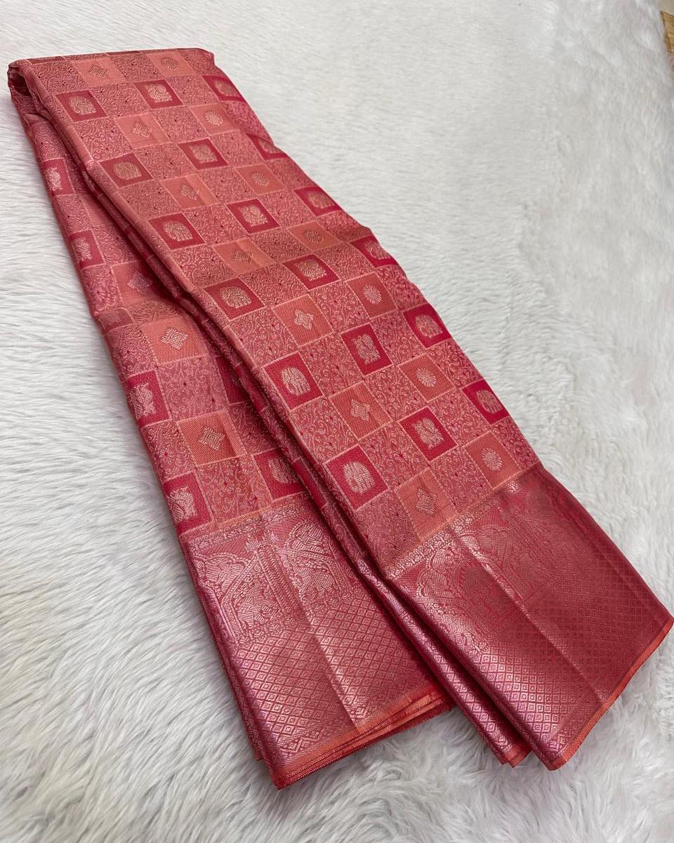 Wrap yourself in sheer opulence with our Soft Silk Saree, a masterpiece of artisanal craftsmanship and exquisite design. Made from the highest quality silk fabric, this saree boasts a lustrous sheen and a buttery soft texture that is unmatched. Be the epitome of style and grace with this luxurious attire that is sure to turn heads and captivate hearts.