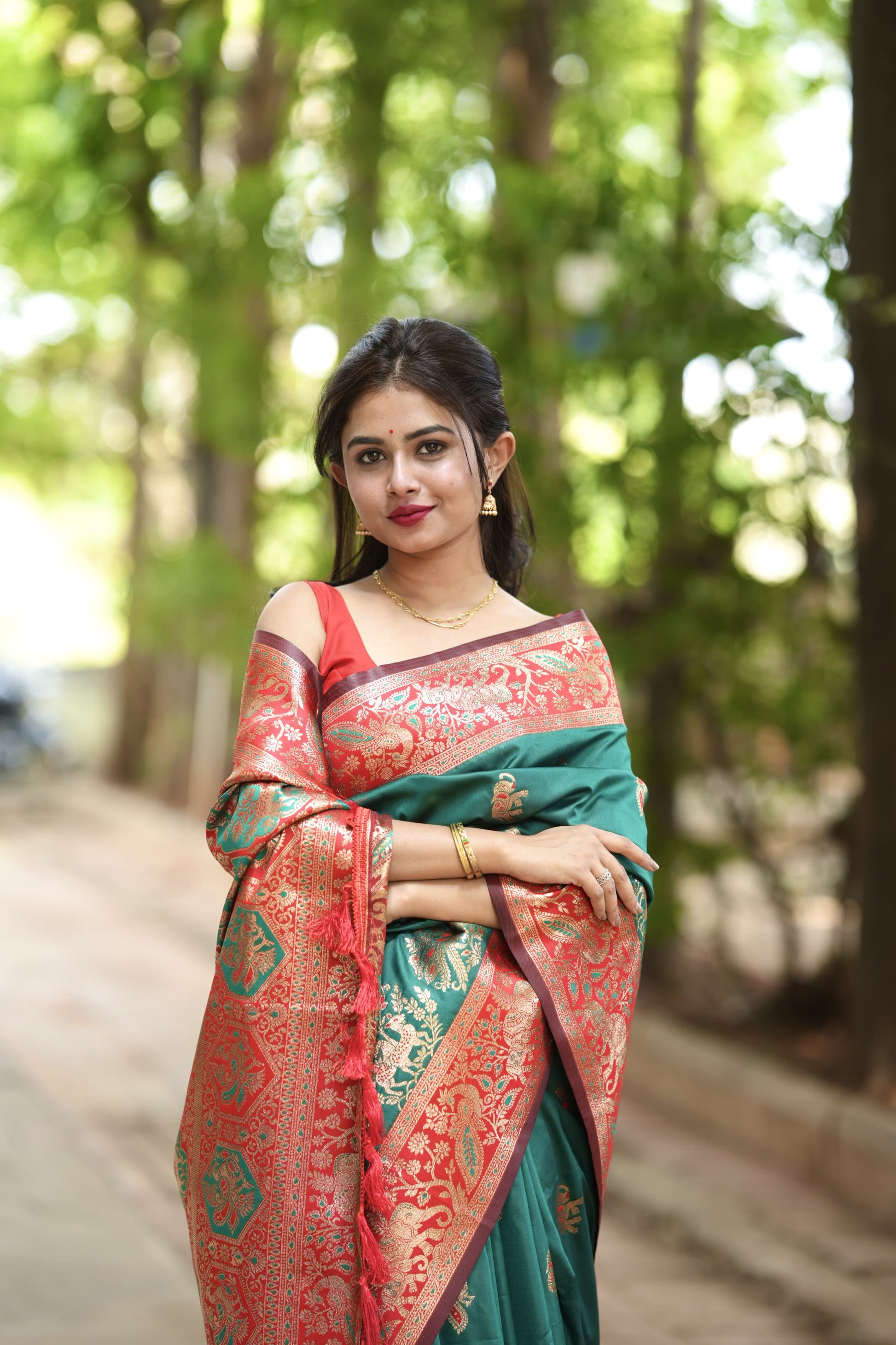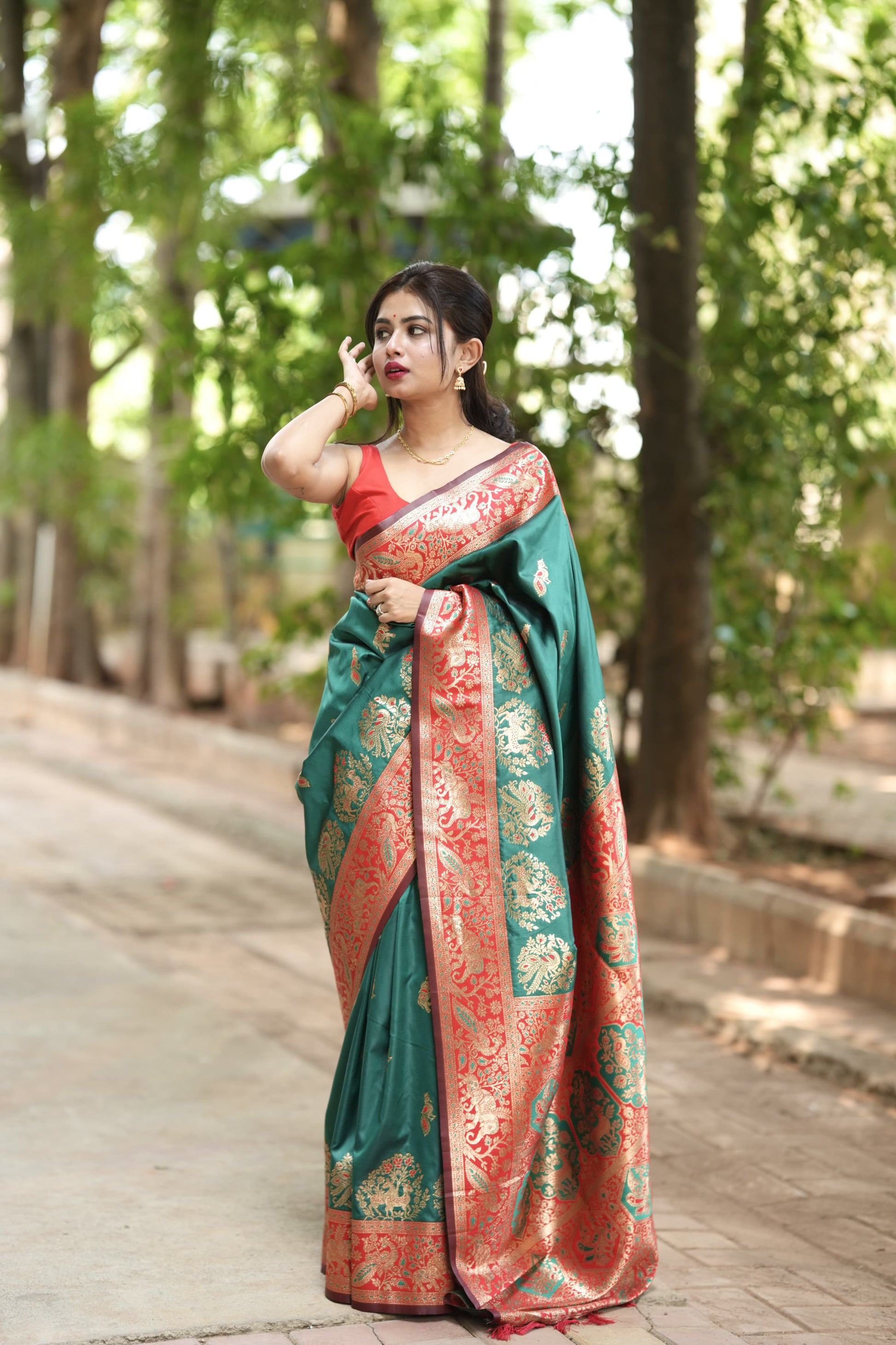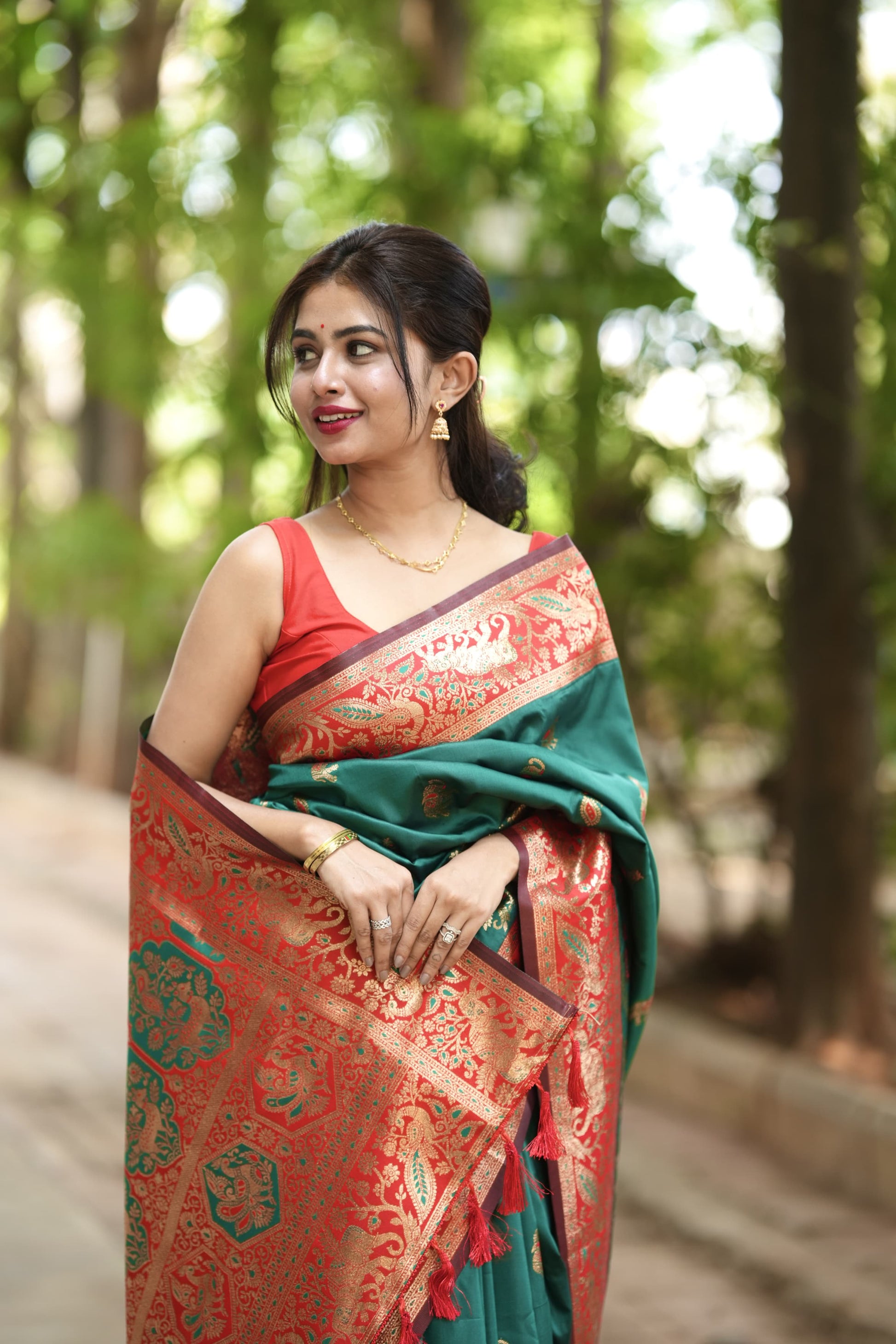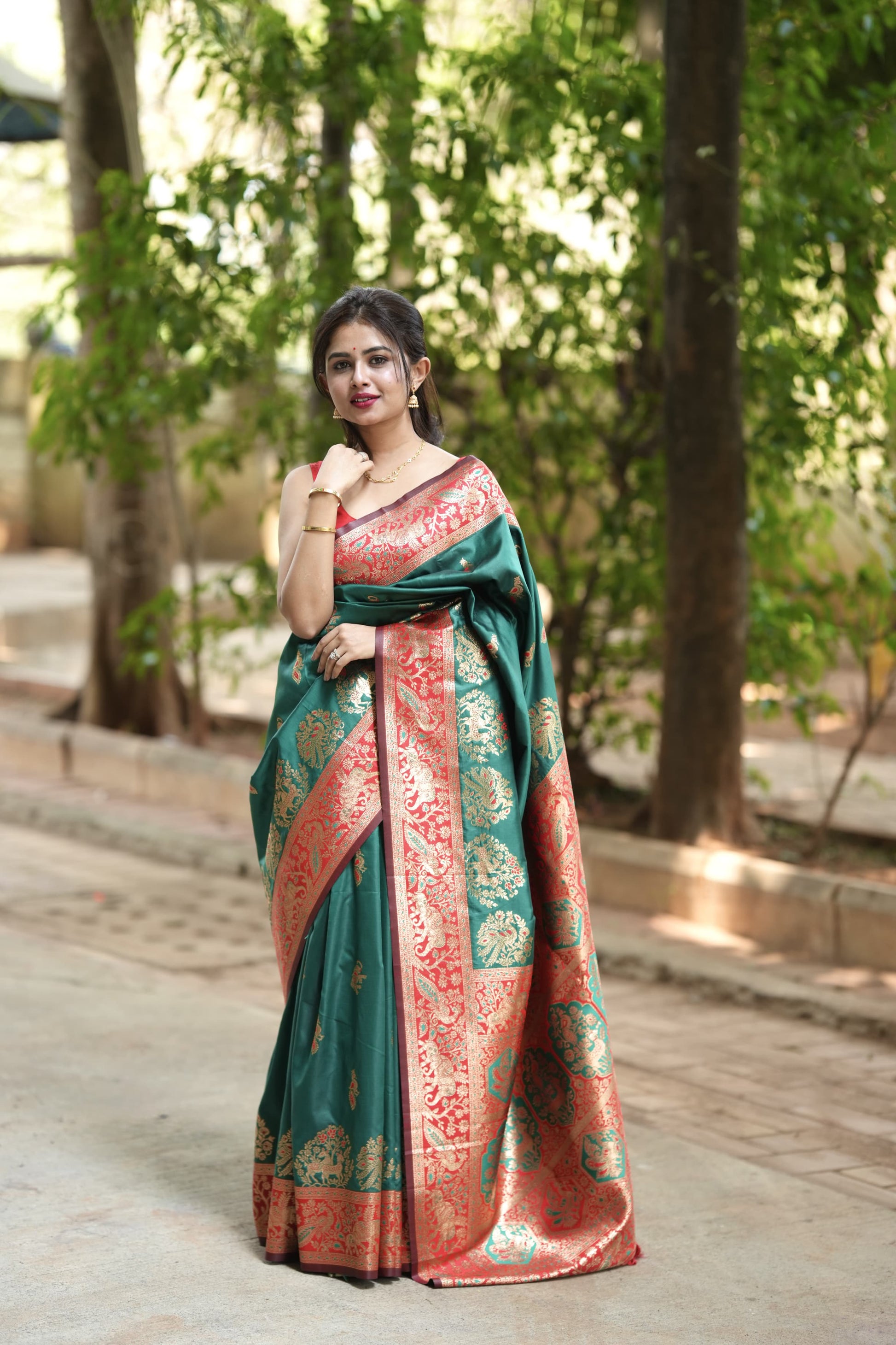 Sempiternal Green Soft Silk Saree With Lassitude Blouse Piece