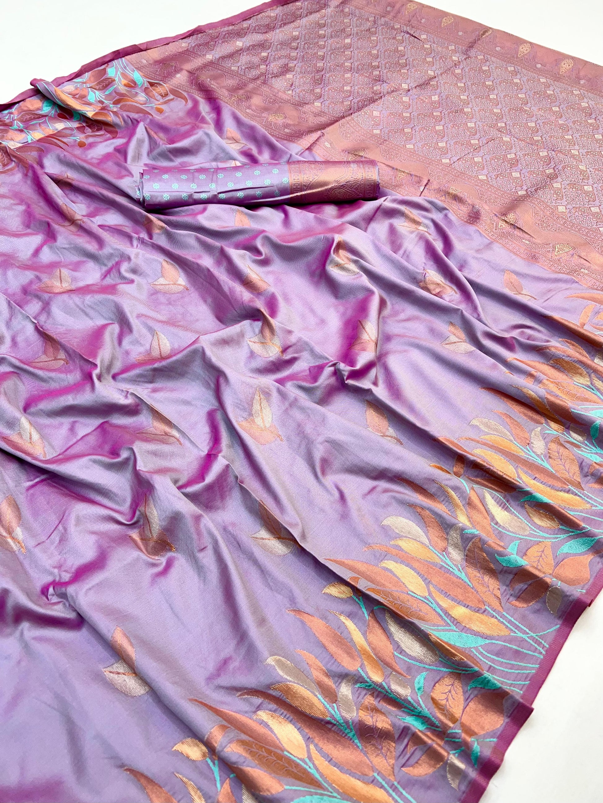 Seraglio Light Lavender Soft Banarasi Silk Saree With Flamboyant Blouse Piece