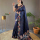 Trendy Navy Blue Soft Banarasi Silk Saree With Intricate Blouse Piece